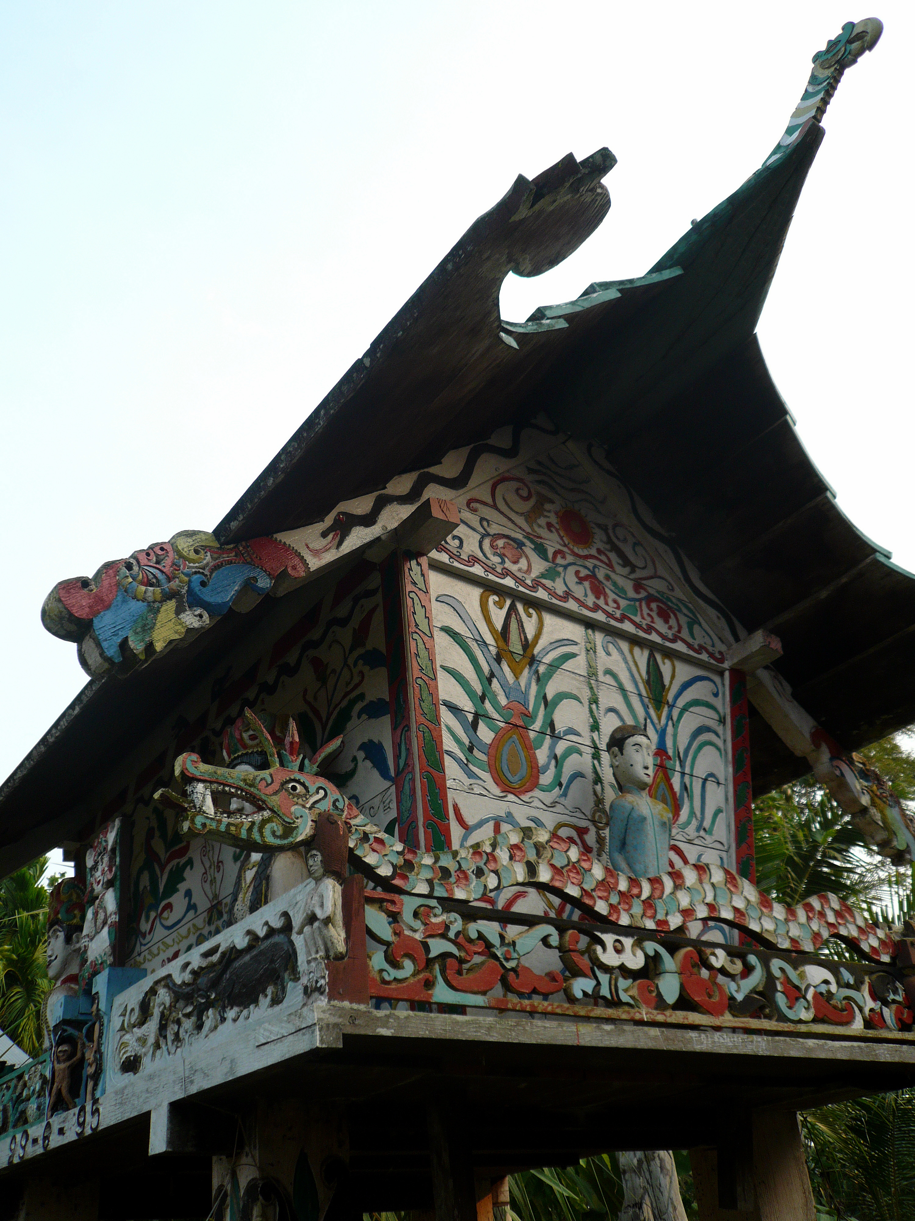 Village strolls and walks to the nearby ladangs or family cropping areas yield so many interesting sights and meetings. The village shops line the high street with a few simple eating houses. Passers by have a ready smile. After the shops, houses line the river bank, and interspersed with those are the bonehouses.
